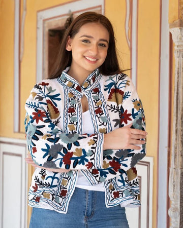 Wokam Embroidered Overlay in cotton silk with all over applique embroidery and hand stitch detailing....