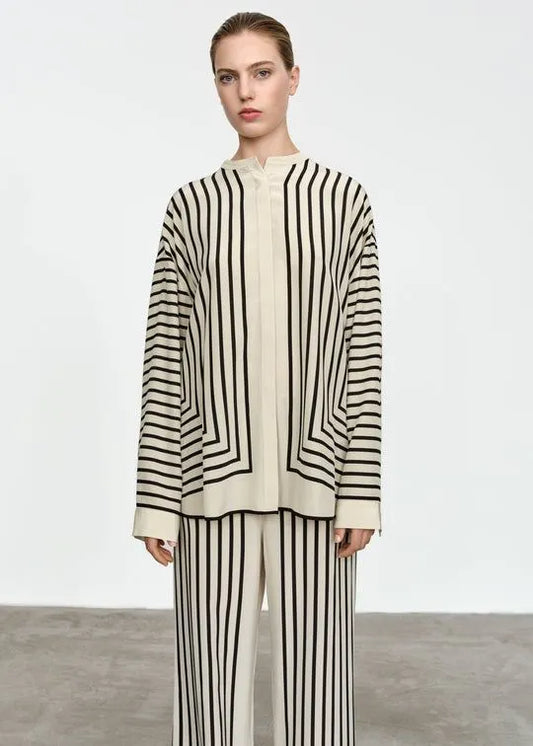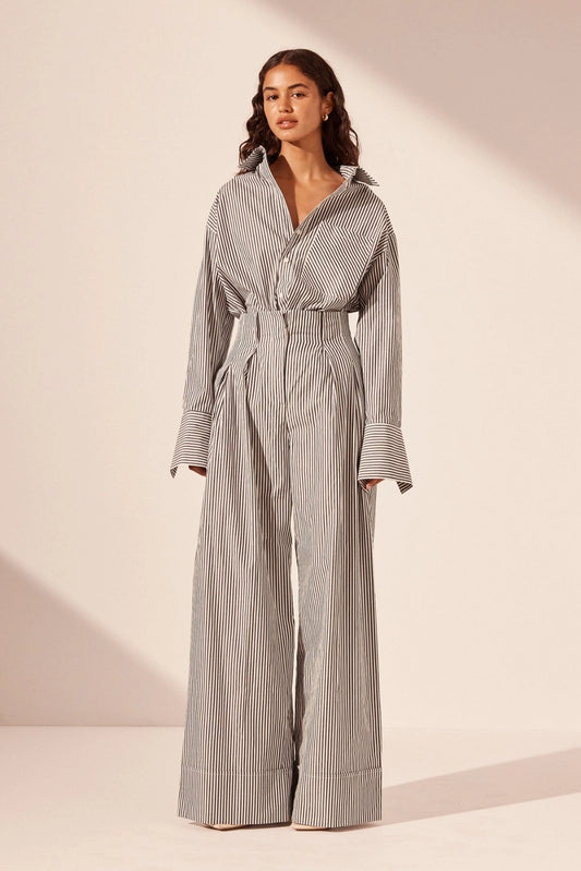 High waisted relaxed pant in the exclusive Jayde stripe in a soft fabric.