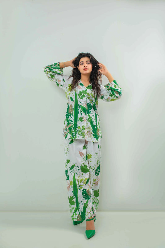 Royal Tree print outfit.....Long sleeves Royal Tree palms print with spring high waist trouser created...