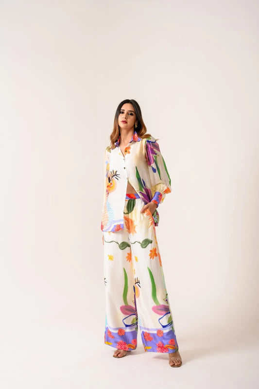 Experience bohemian bliss with our Wild Flower Co-Ord Set, which blends tropical and tribal prints...