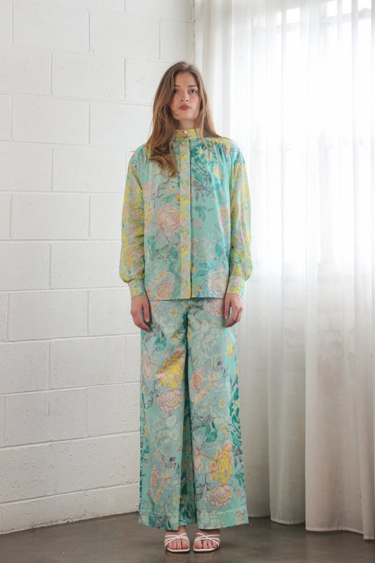 About the SHIRT Introducing the Stand Collar Billow Blouse in Rose Azure. Designed with a...