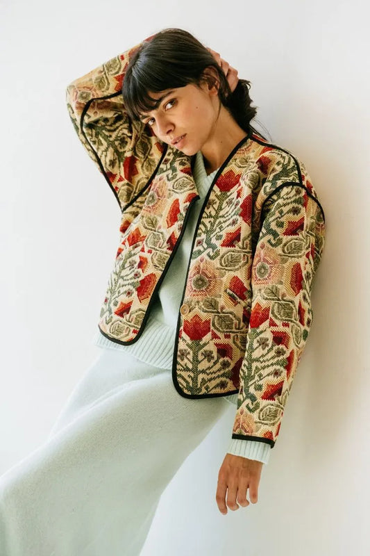 Unveil a world of elegance with our "Royal suzani." This exquisite jacket features an white...