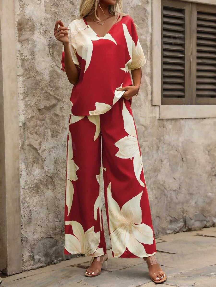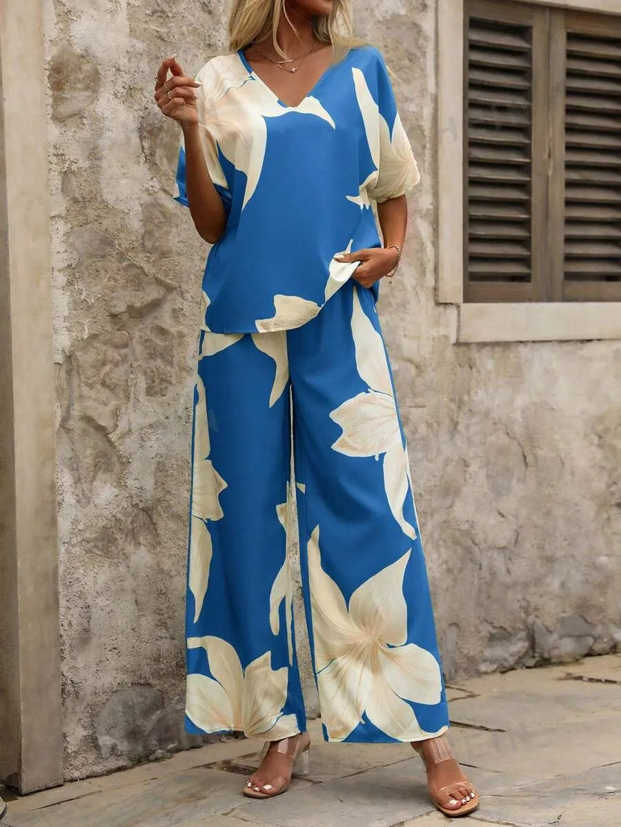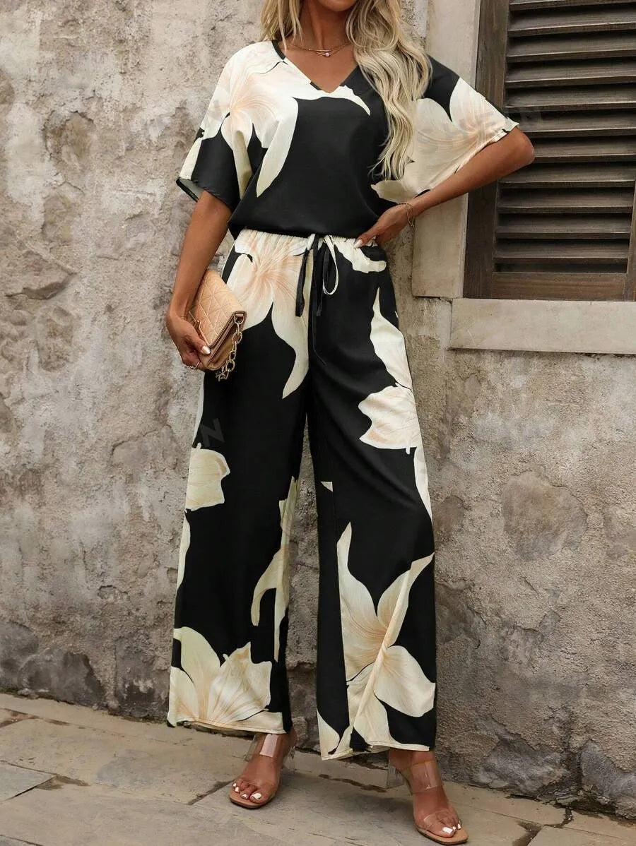STYLISH DESIGN: Two Piece Outfits For Women/V Neck Crop Tops For Women/Wide Leg Pants For Women/Casual Suit Set For Women/Palazzo Pants Set For Women/Short Sleeve Outfits For Women/Matching Set For Women/Vacation Outfits For Women/Summer Clothing Set For Women 2024 Outfits For Women/2Pc Sets For Women.