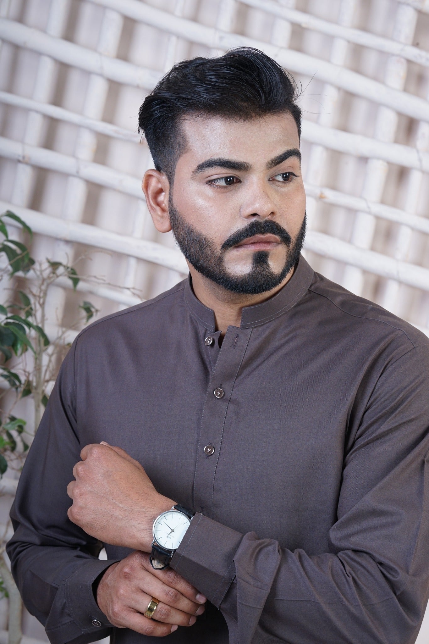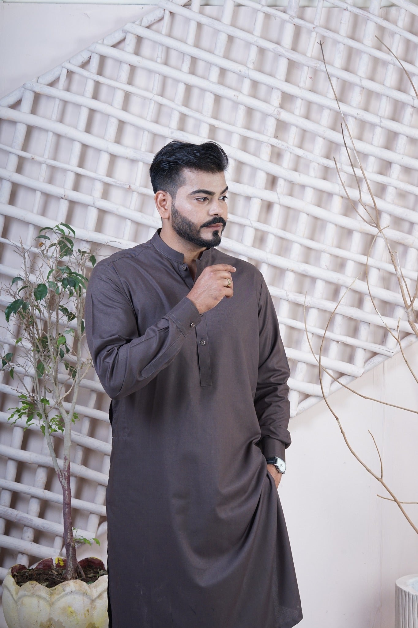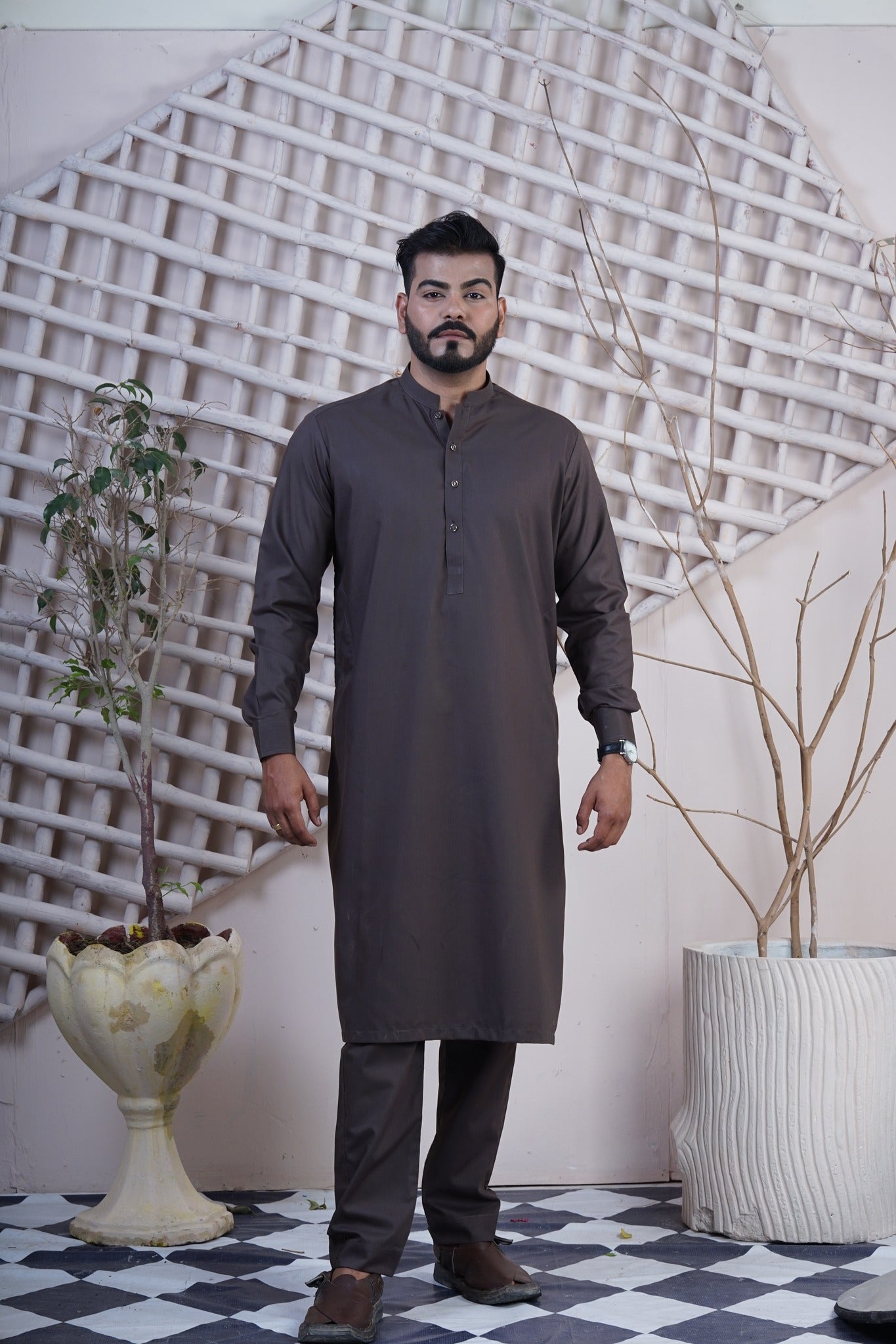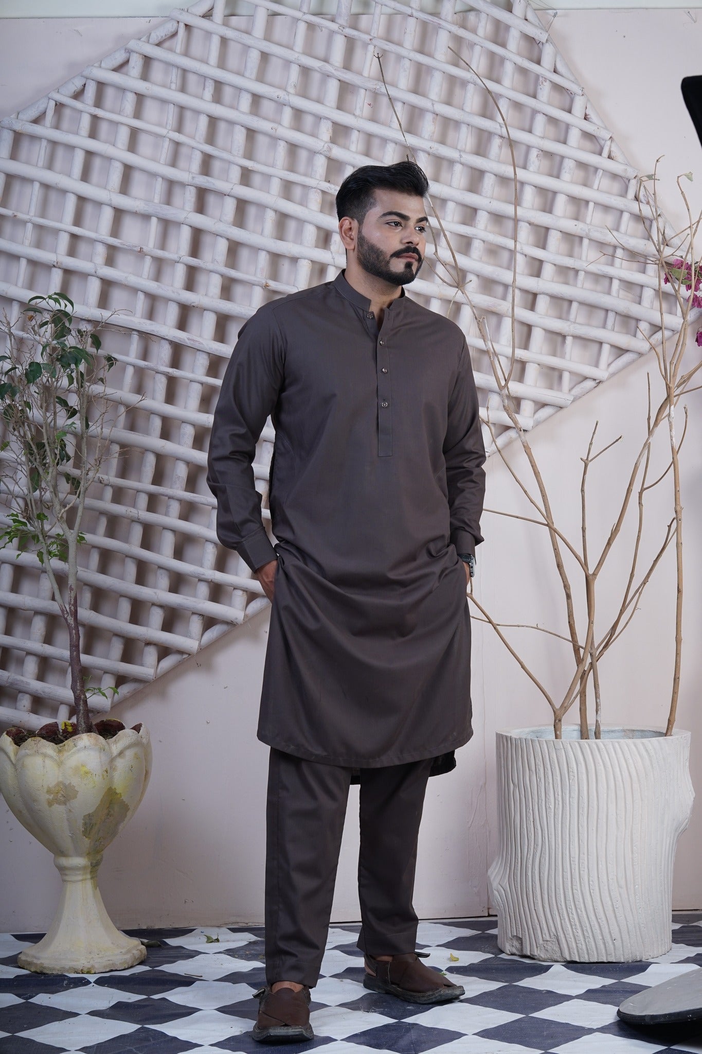 A refreshing twist on a classic Colour, this Brown Noil kameez shalwar is a must-have for any stylish man’s wardrobe.
