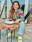 Featuring vibrant floral prints and detailed ethnic-inspired borders, this jacket brings together traditional charm and modern silhouette. Its sleek cut, comfortable fit, and unlined design make it ideal for layering over casual outfits — from denim to dresses.