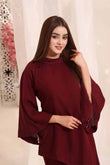 Elevate your casual appeal with this pair of wine sweatshirts with pants from AND. Tailored with high-quality fabric they promise to keep you at ease. Besides, they flaunt a shirt collar, full sleeves, and solid pattern that lends it a classy appeal. Team it with a pair of peep-toes to flaunt an intelligent look.