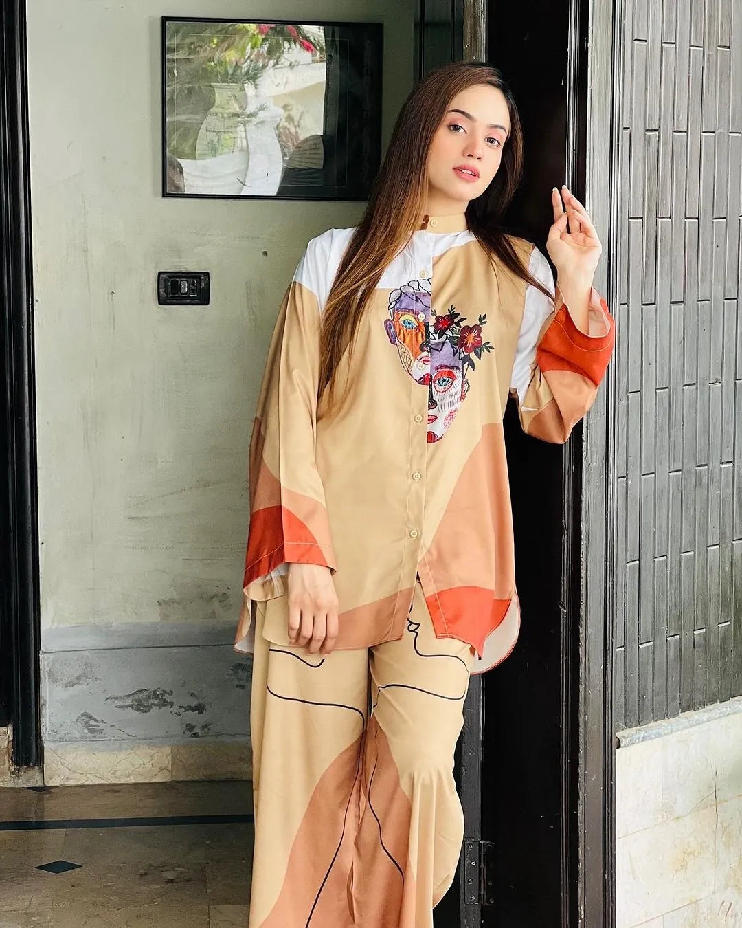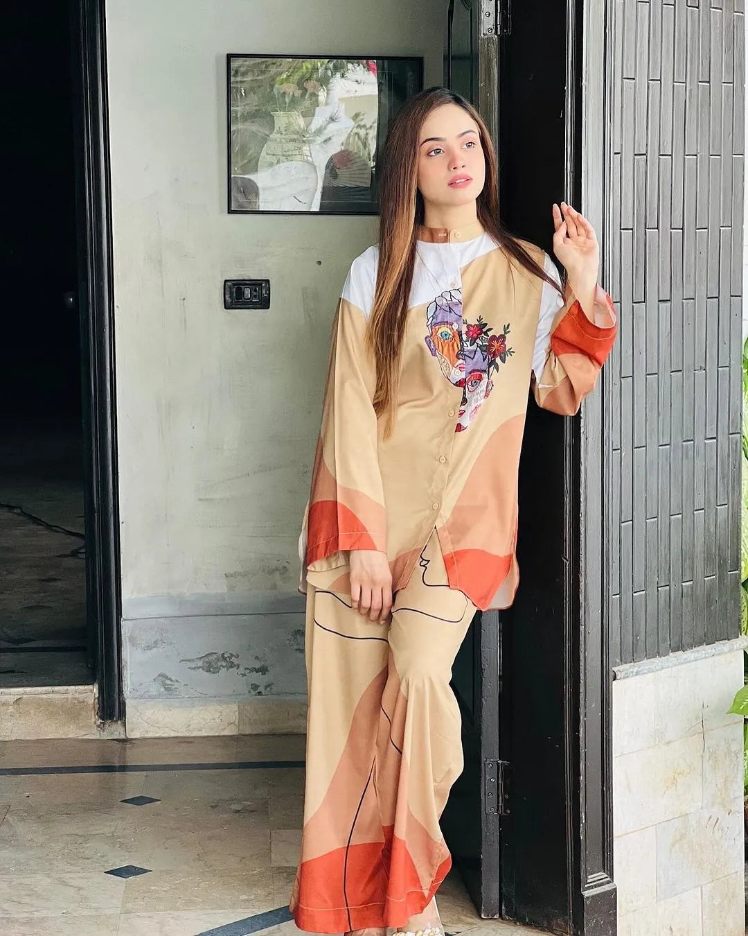 Embrace elegance and artistry with the Lady Queen ensemble. Featuring bold, abstract designs and a chic, modern cut, this outfit blends comfort and fashion effortlessly. Perfect for making a statement, it’s a must-have for the style-savvy woman.