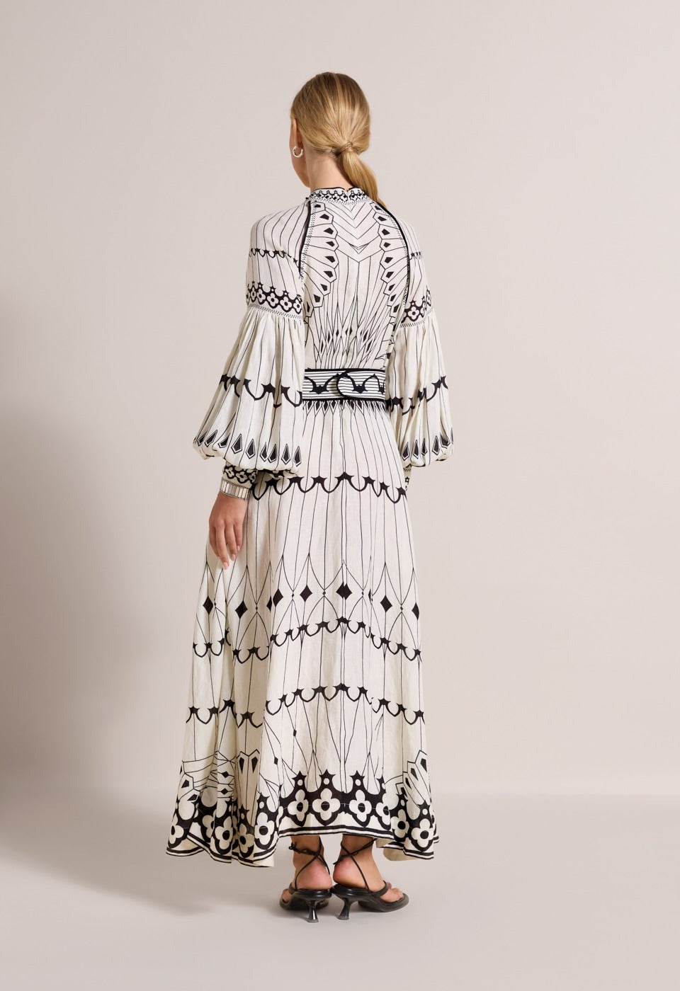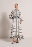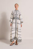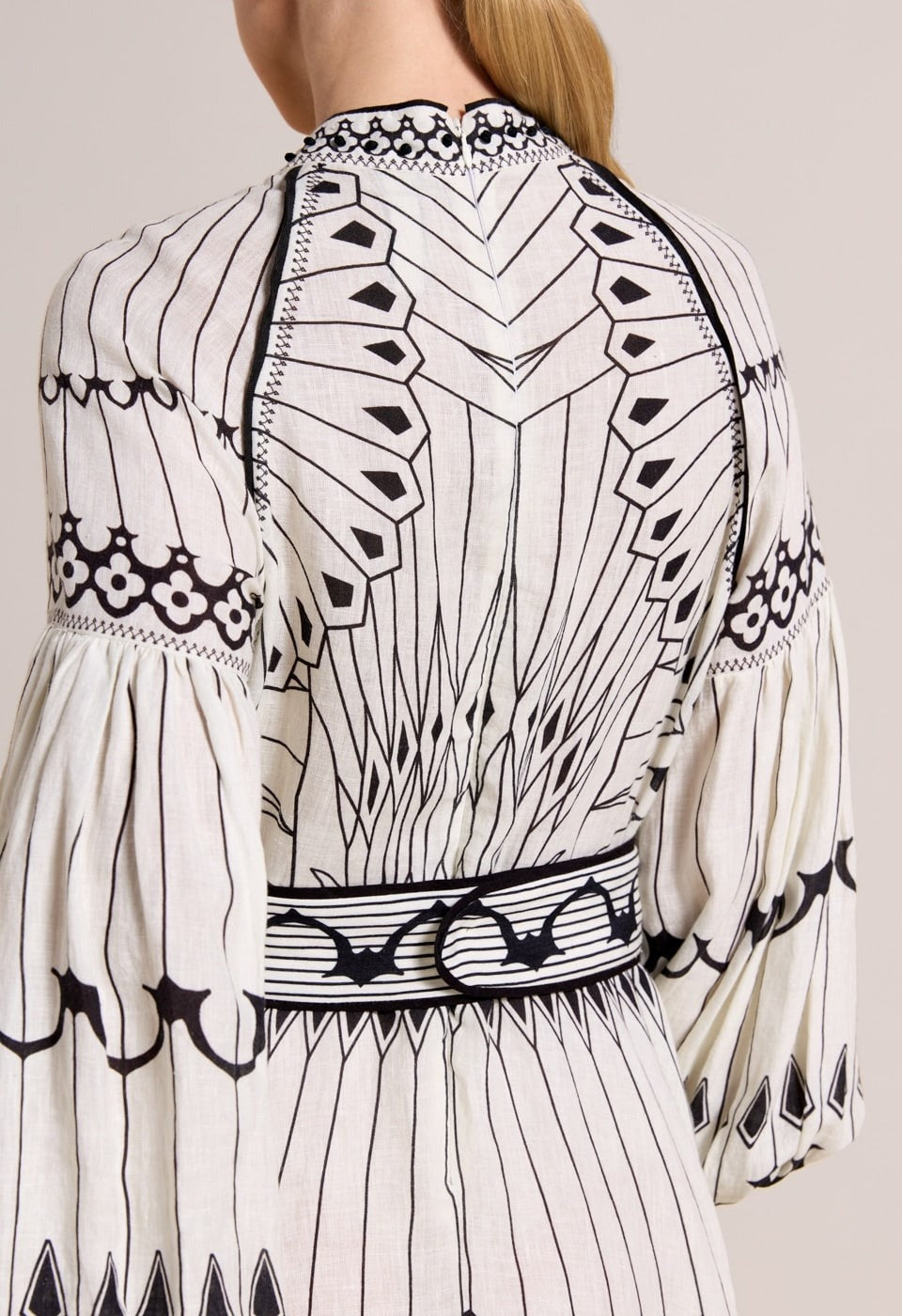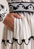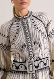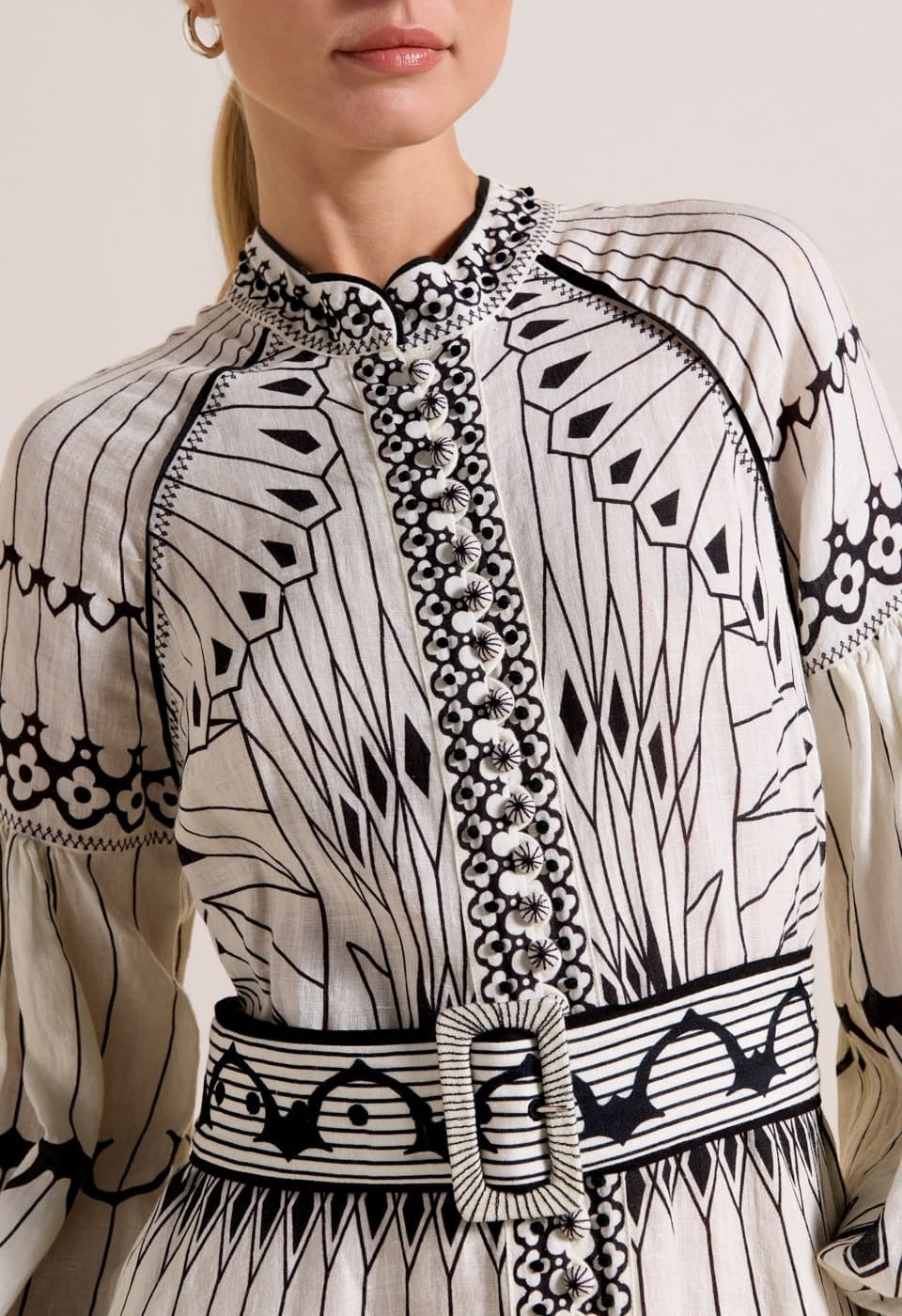 Delicate French knots the collar and placket, while a detachable buckled belt with eyelets completes the look. Wear this to a friend’s wedding or a nice Sunday brunch, either way, you are guaranteed to standout.