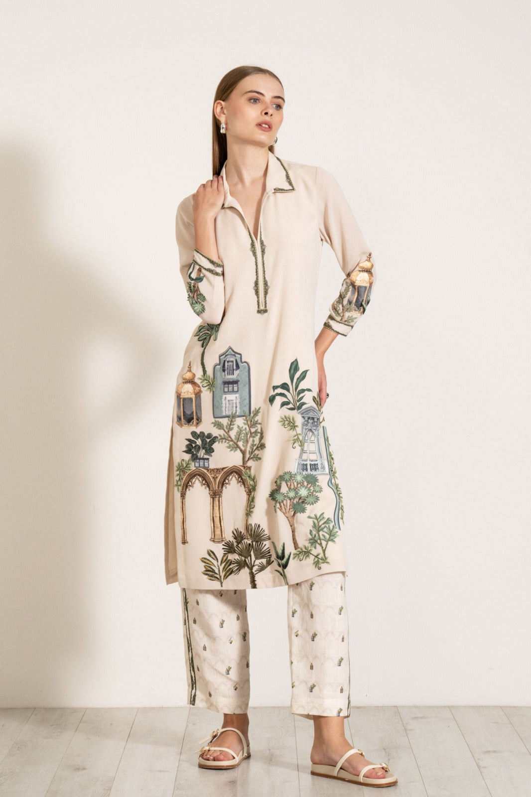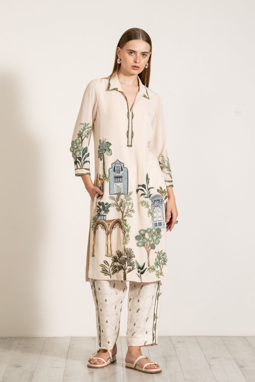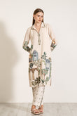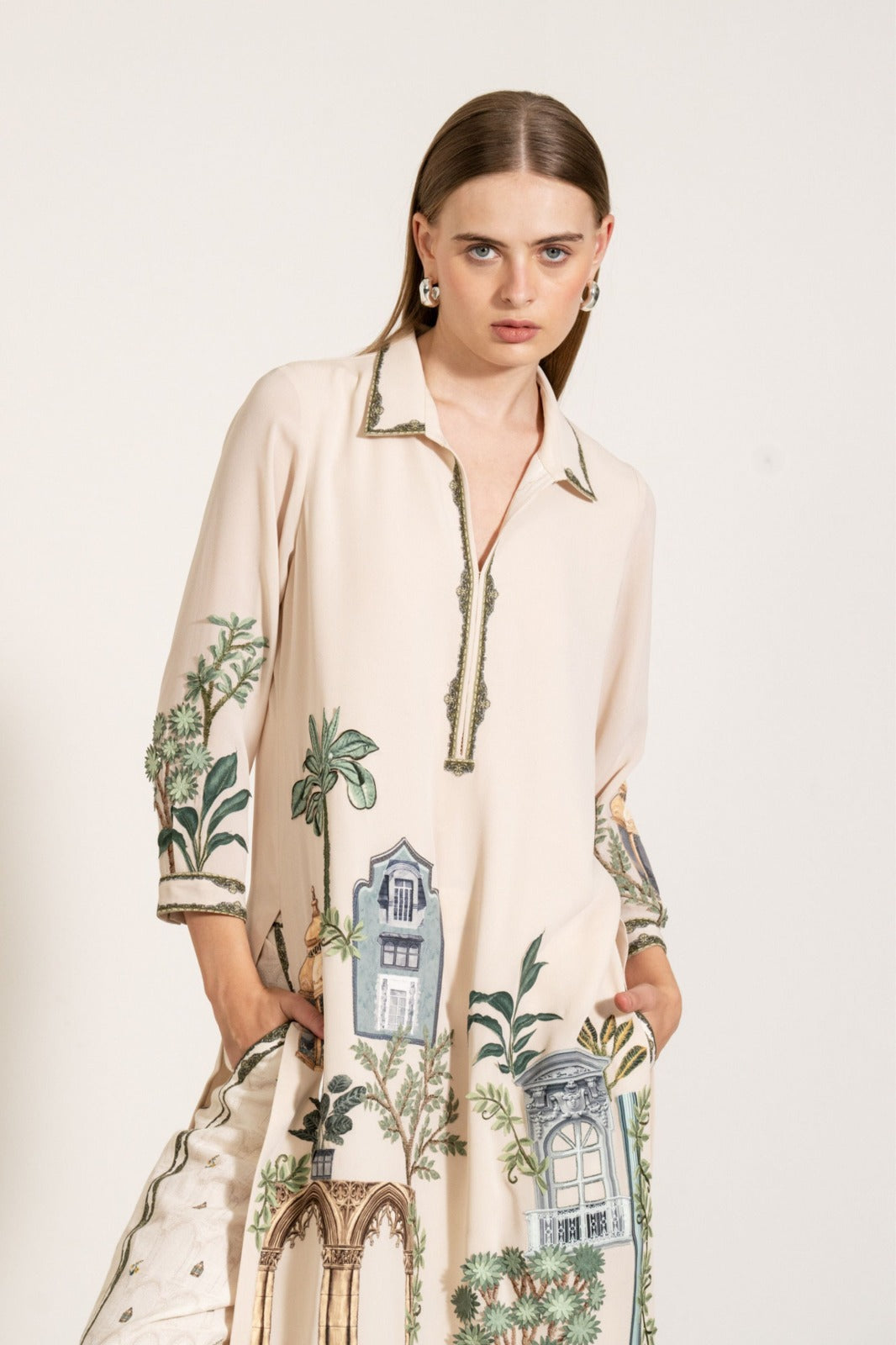 Introducing the mia tunic, elevate your wardrobe with the sophisticated elegance of the windows of the world printed tunic. Crafted from a luxurious fabric, offering a smooth texture, providing both comfort and style. The ivory color gives it a timeless and versatile appeal, making it perfect for any occasion, whether formal or casual.