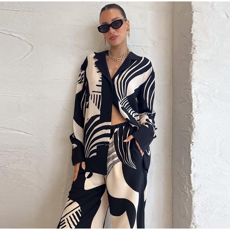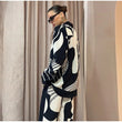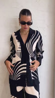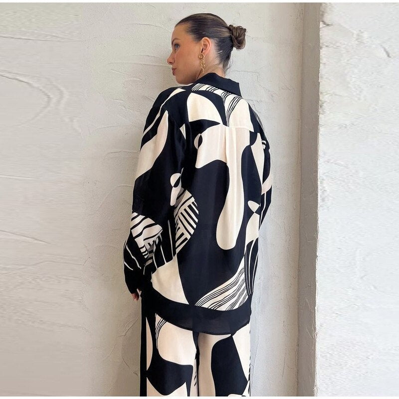 The Monochrome Muse Co-Ord Set is a statement outfit designed for modern, confident women. Featuring a bold black and white abstract print, this suit blends contemporary fashion with timeless elegance.