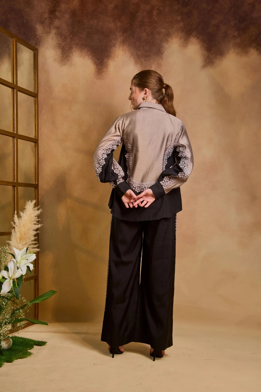 Perfect for formal gatherings, evening events, or elevated daywear, this set delivers understated luxury with contemporary charm.