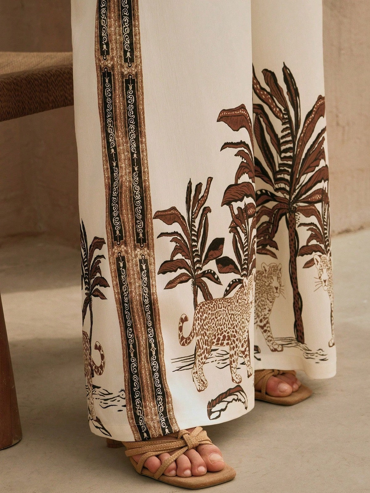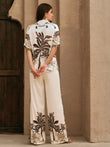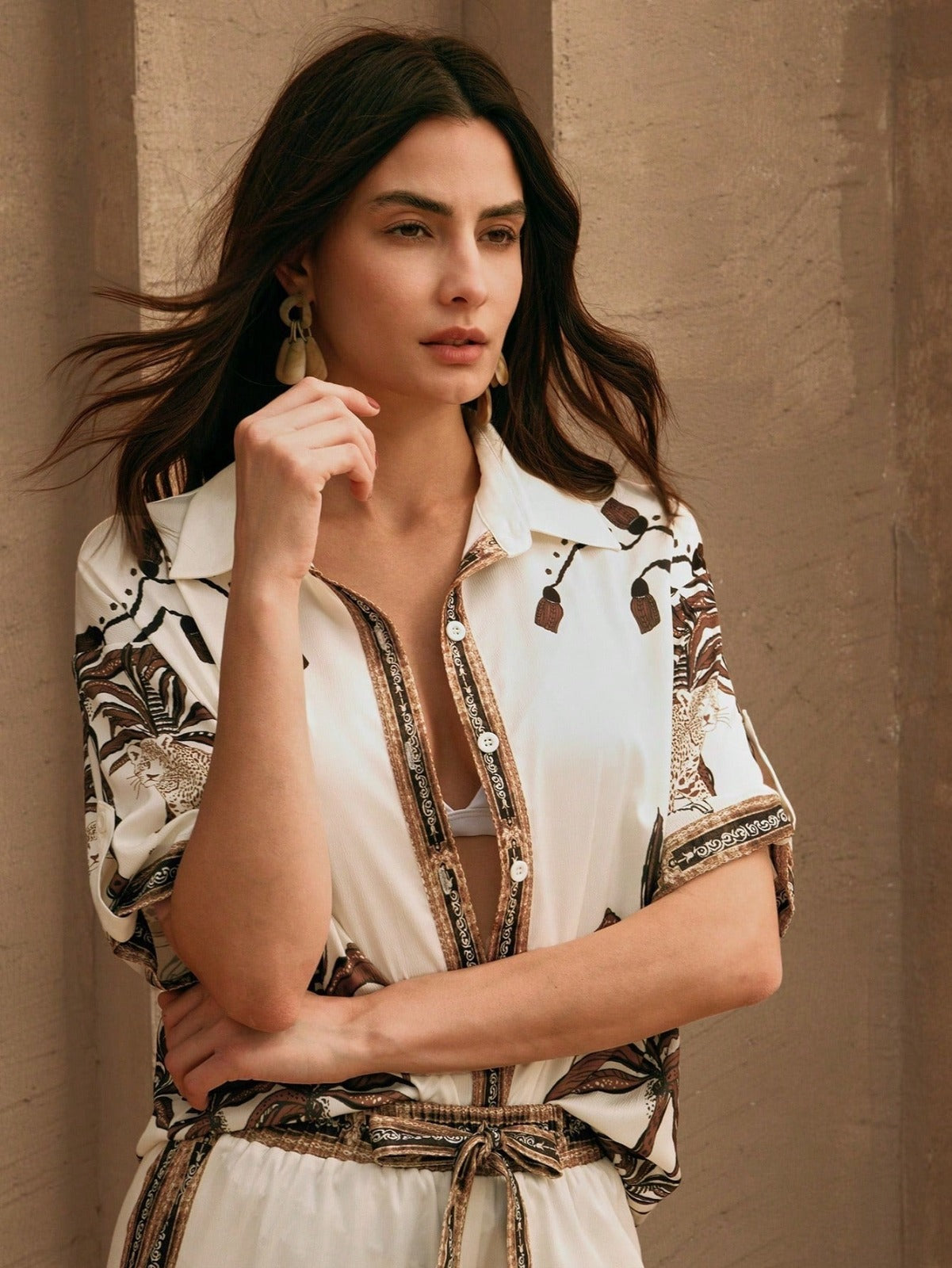 Step into effortless elegance with our Paradise Co-Ord Set — a perfect blend of comfort and style. Crafted from premium, this set features a relaxed-fit shirt and wide-leg pants adorned with earthy palm and leopard motifs. The soft neutral tones bring a touch of sophistication, making it ideal for brunches, travel days, or chic casual outings.