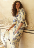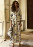 Step gracefully into your next brunch invite with this peplum co-ord set, crafted from high-quality habutai. Adorned with a captivating print, this ensemble strikes the perfect balance between casual and chic. Complete the look with the matching printed scarf, detailed with tassels for an added touch of elegance.
