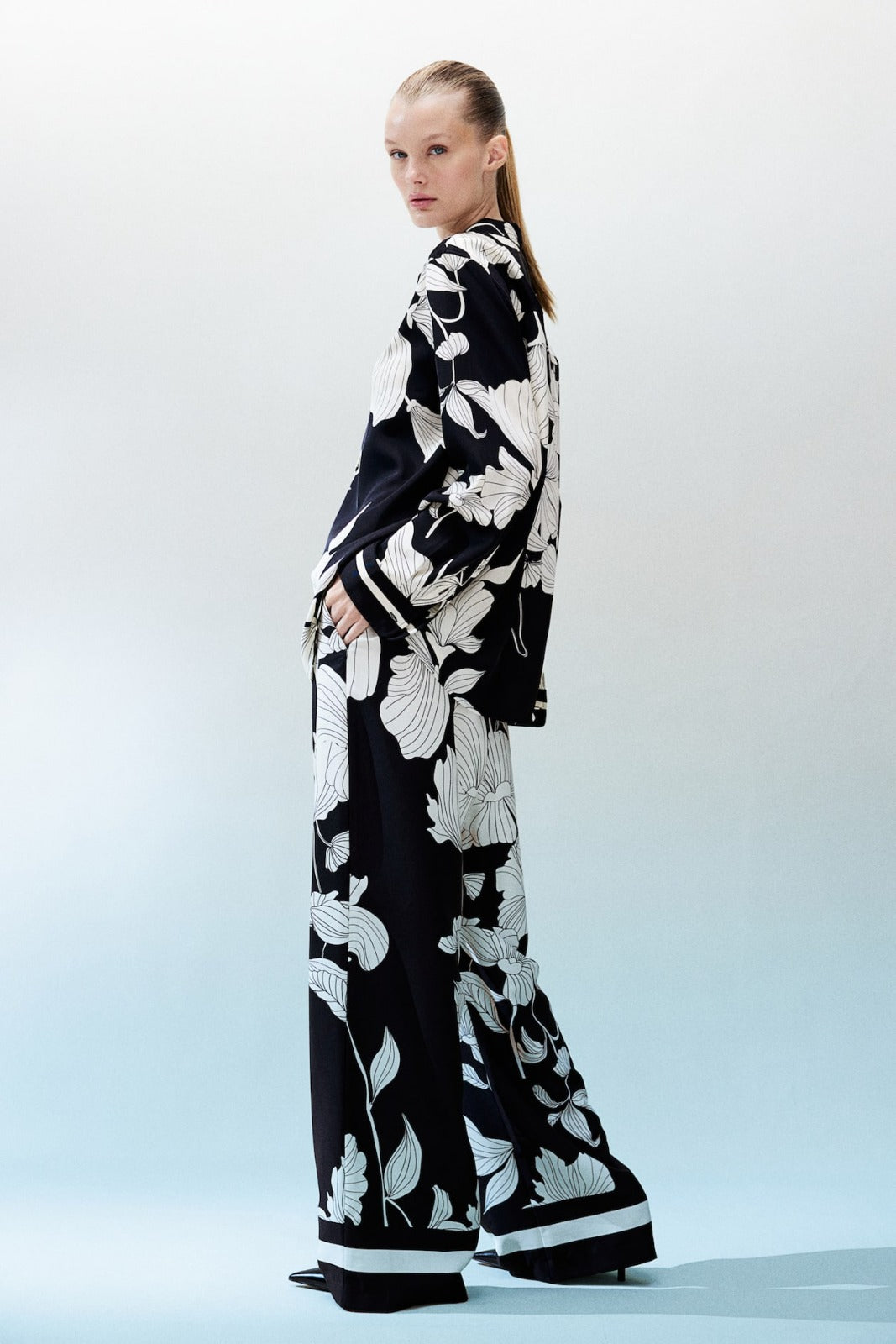 Loose-fit pants in soft twill. High waist, elasticized, drawstring waistband, and side pockets. Wide legs