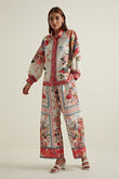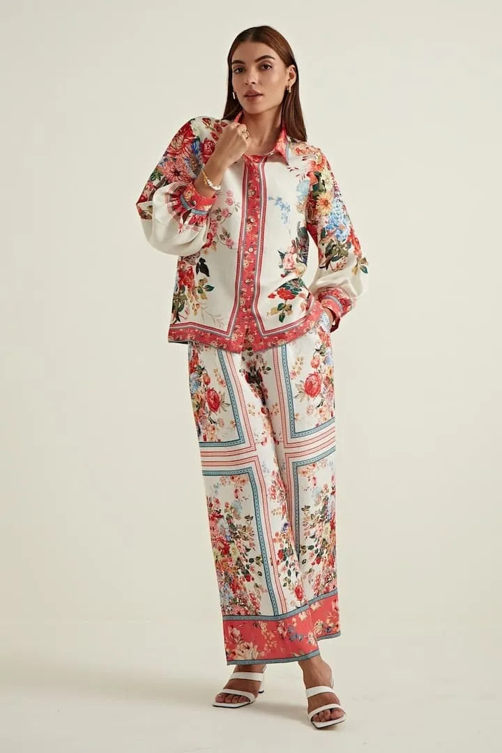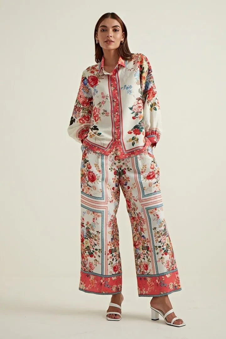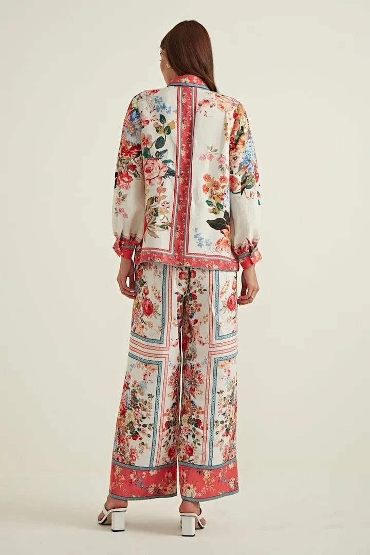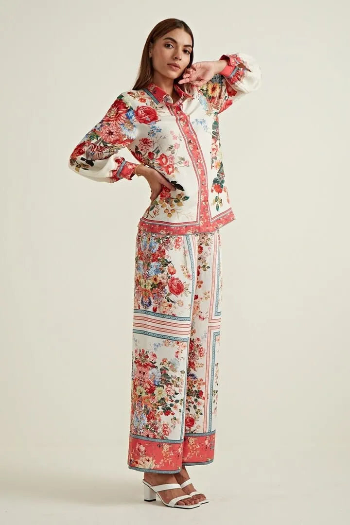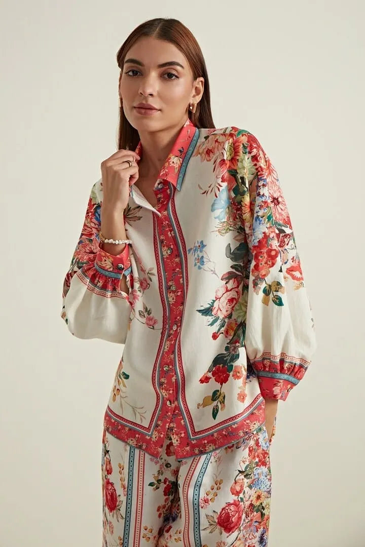 Multi color mildly balloon sleeve shirt with all over contrast vintage floral print.