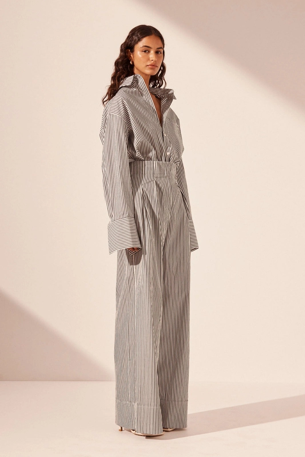 High waisted relaxed pant in the exclusive Jayde stripe in a soft fabric.