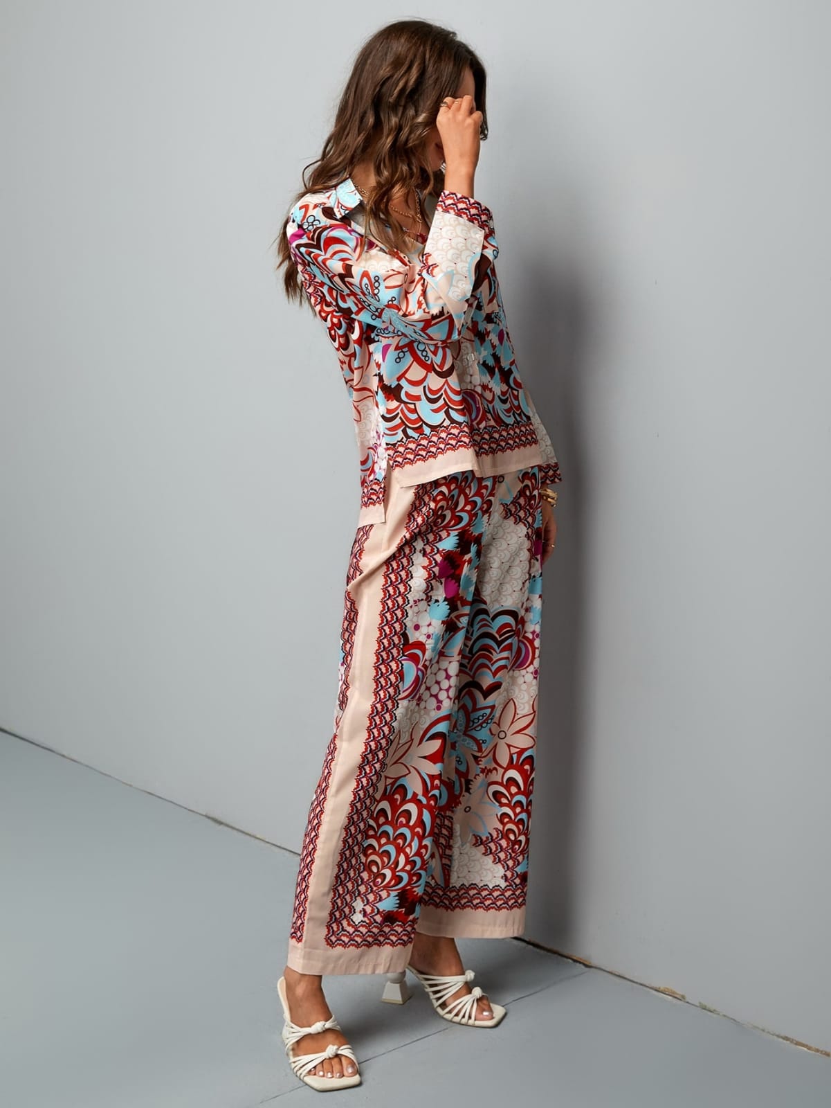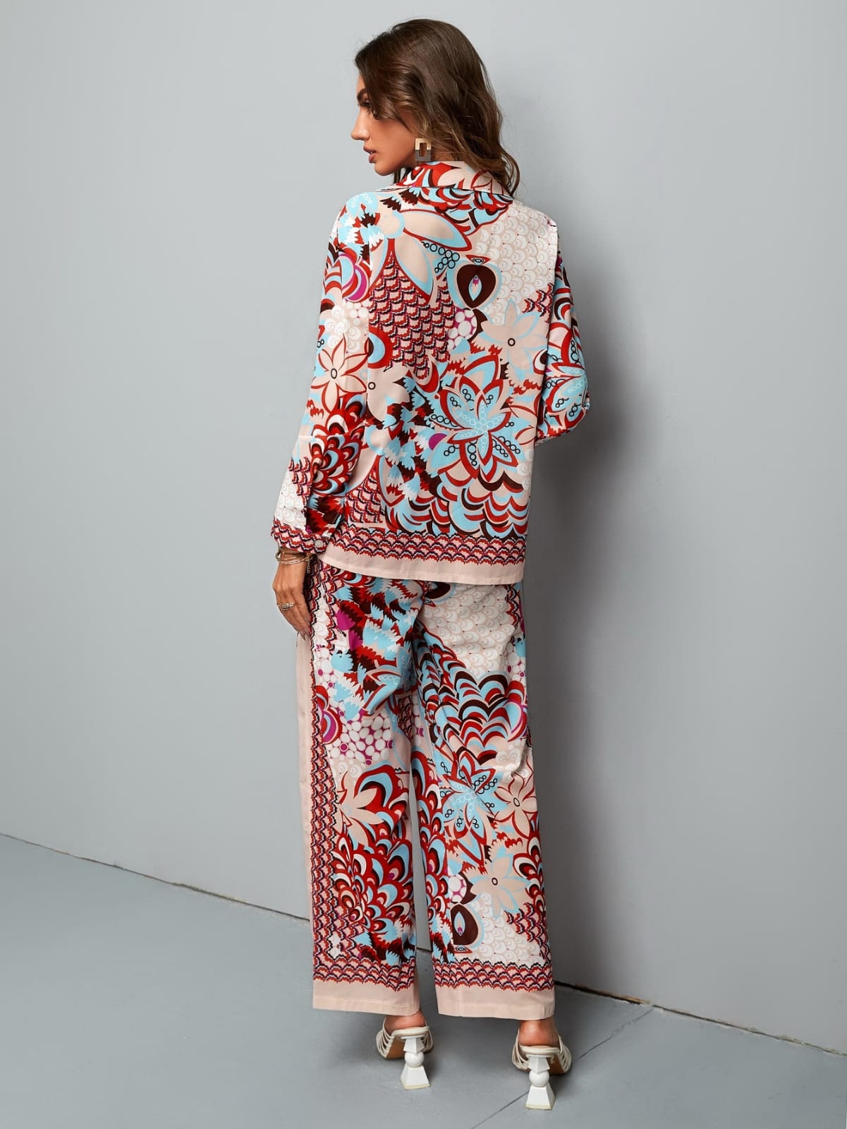 Coords multicolor graphics printed outfit....long sleeves shirt mixing with vintage floral print.